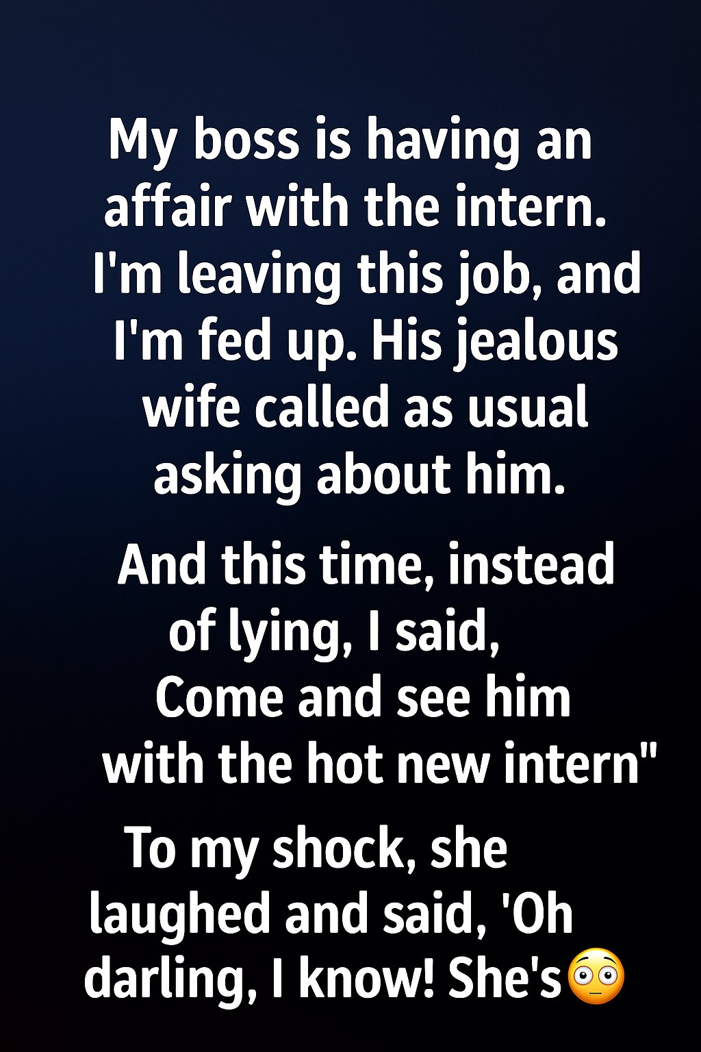 When I first started my job, I never imagined it would turn into a daily soap opera. My boss, a charming man with too much confidence, had everyone fooled — except me. Rumors swirled for months about him and the new intern, and the tension in the office grew thicker by the day. I tried to stay focused, but the constant drama made it impossible. Eventually, I decided it was time to leave for my own peace of mind.