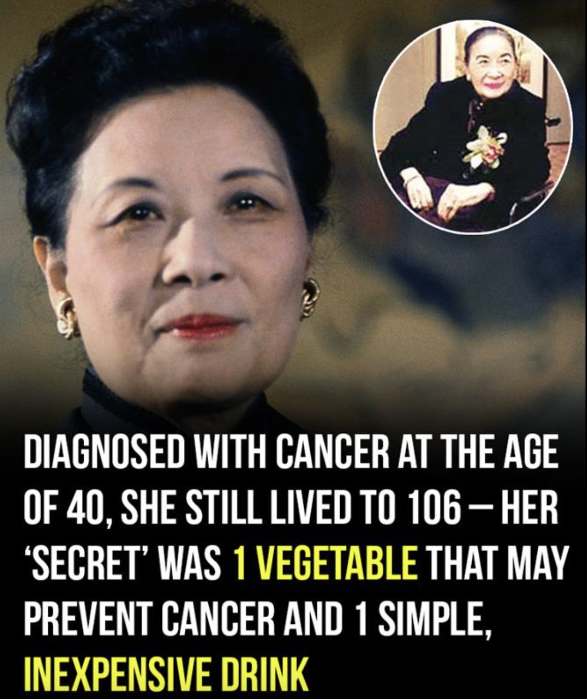 Diagnosed with cancer at just 40, Madame Chiang beat the disease and went on to live 106 years, passing away peacefully in her Manhattan apartment in 2003.