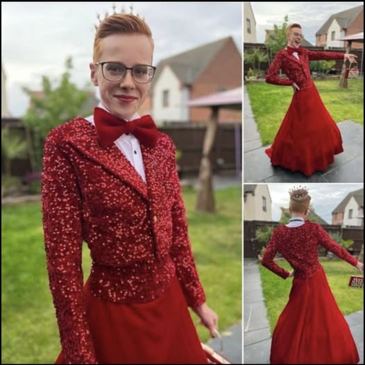 A second shares, “I am so happy for your son he looked absolutely amazing!!!My son is trans, after 3yrs of transphobic bullying in Jan b4 GCSEs [General Certificate of Secondary Education offered in parts of the UK] I had to take him out of school for his mental health. He was always going to prom in a tux and he was deprived of the chance.”