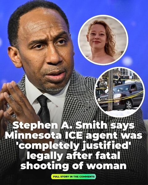 ESPN analyst Stephen A. Smith has weighed in on the fatal shooting of Renee Nicole Good, 37, by an ICE agent in Minneapolis, calling the officer’s actions “completely justified” from a legal standpoint. Good was shot three times in the face during a standoff that ended when she tried to drive her SUV away from officers.