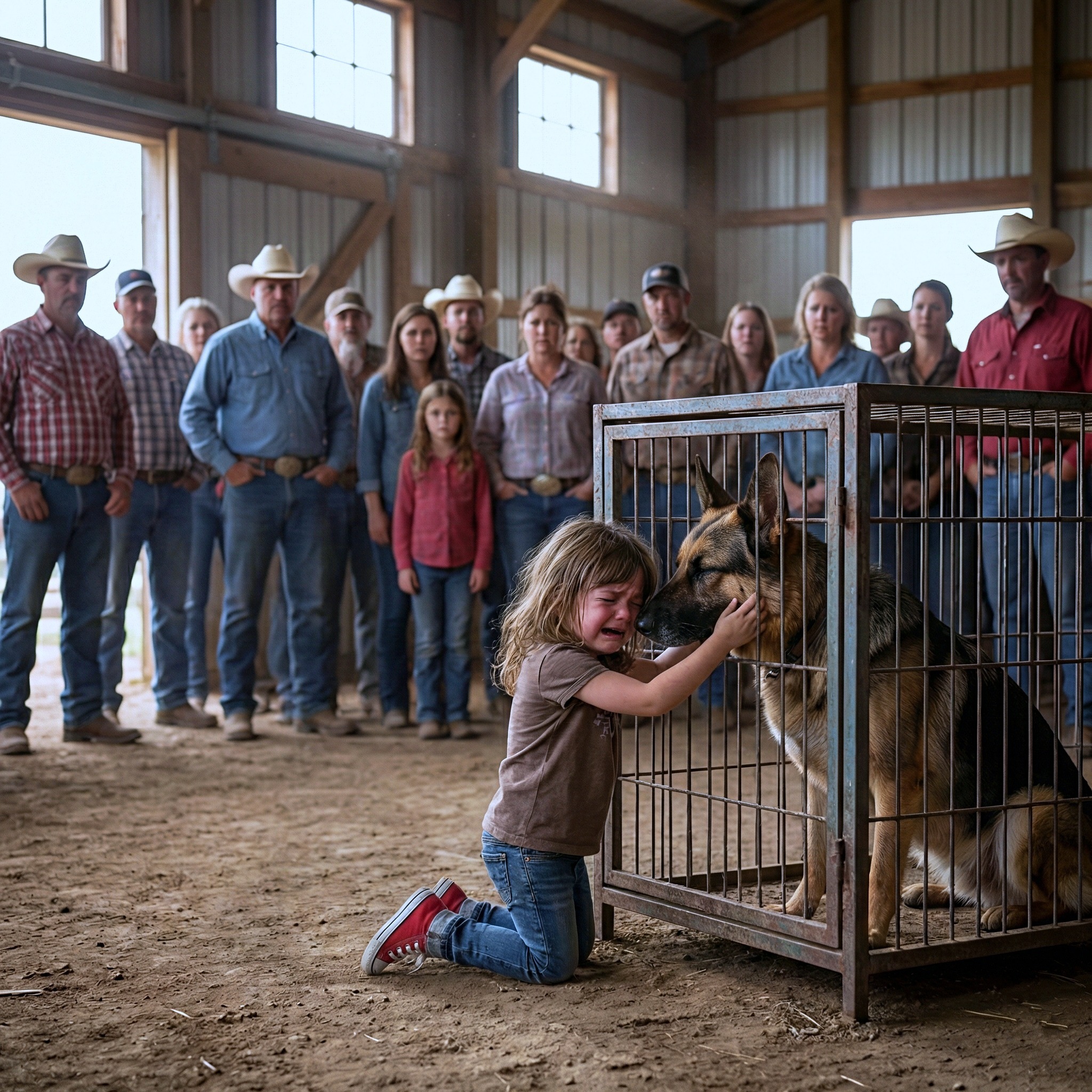 The morning air inside the auction barn was thick with the scent of sawdust, wet fur, and the clinical tension of a marketplace. Most people entered these doors seeking a bargain or a high-performance animal—a Belgian Malinois with a gleaming coat or a Shepherd with perfect obedience scores. They wanted the elite, the “fire,” the dogs whose utility was still high. No one paid attention to the small, solitary figure standing by the entrance: a nine-year-old girl named Emma, whose fragile frame seemed swallowed by the crowd of towering ranchers and uniformed handlers.