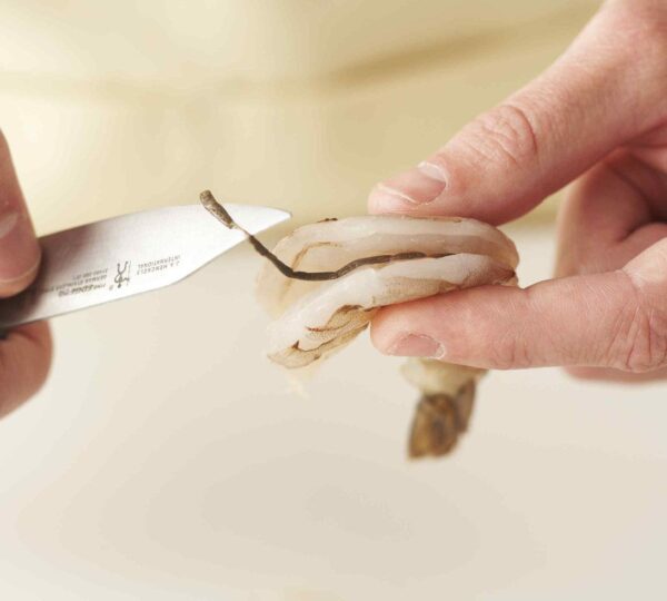 Deveining shrimp is simple and takes only a minute once you get the hang of it. Here’s how: