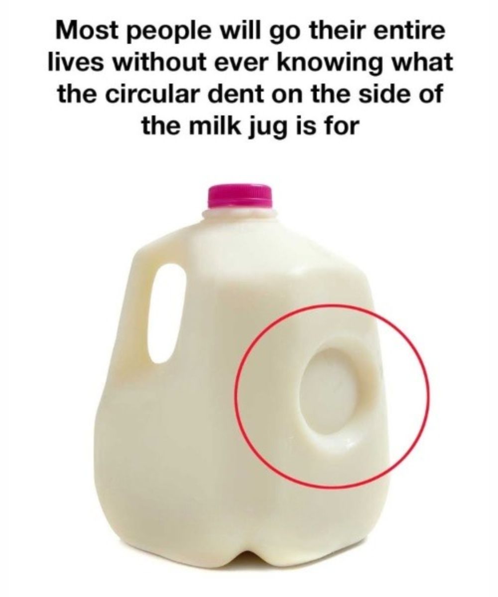 Milk jugs often make sure a lot of movement during shipping, stacking, and storage. They may be jostled, stacked on top of one another, or exposed to temperature fluctuations—all of which can put additional strain on the container. The circular dent helps absorb sh0cks and impacts, decreasing the likelihood of cracks or breakage. If the jug is accidentally dropped, the dent also offers a bit of “give,” helping to prevent catastrophic spills.